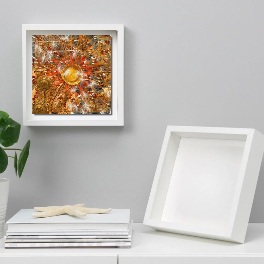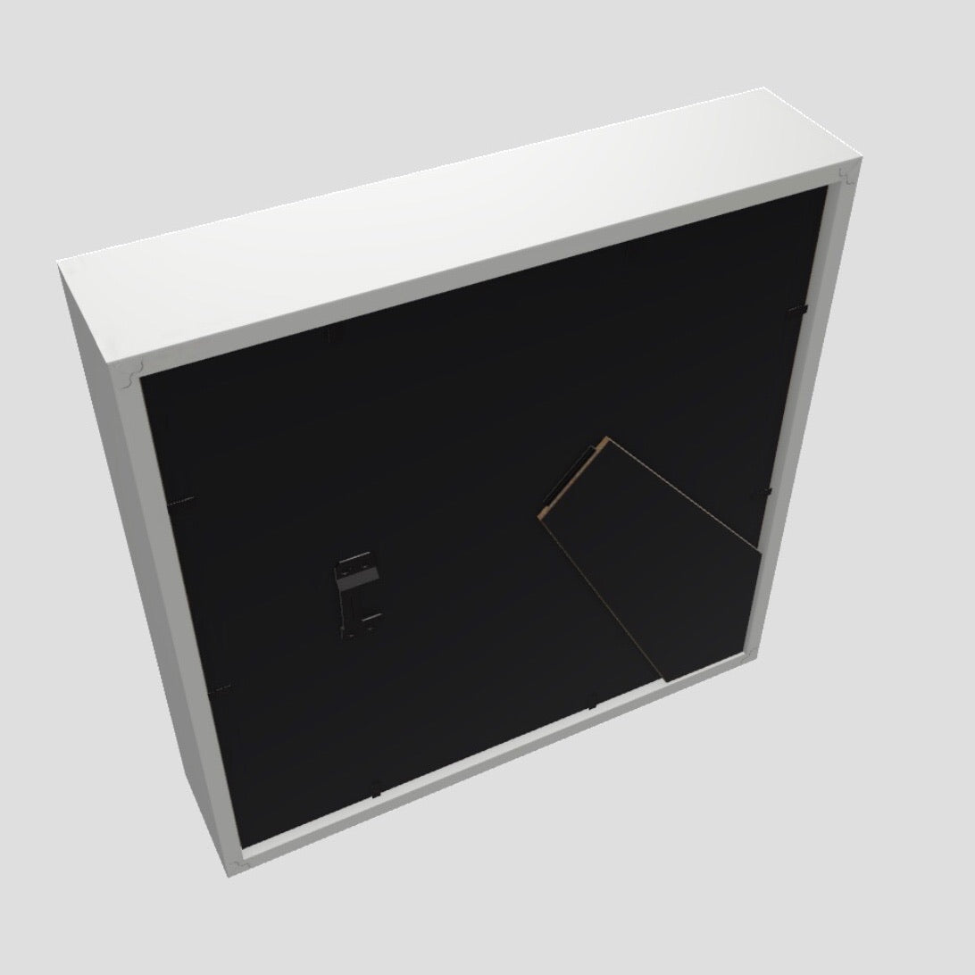 SSD Original Cover Art Printed on 8”x 8” x 1/16” Lightweight Tempered Glass Tile, Classic White Shadowbox Frame, White Acid-Free Mat Backing.