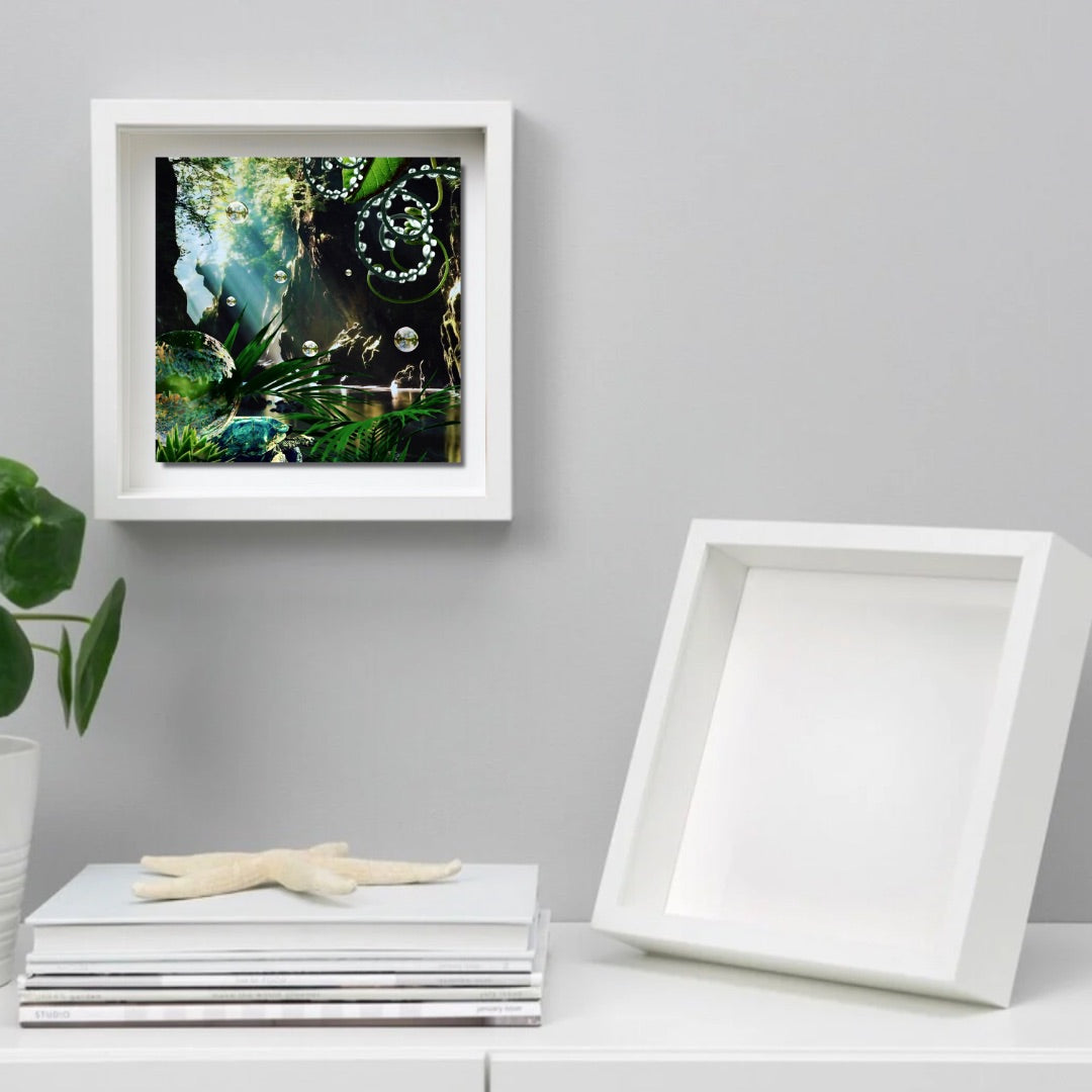 SSD Original Cover Art Printed on 8”x 8” x 1/16” Lightweight Tempered Glass Tile, Classic White Shadowbox Frame, White Acid-Free Mat Backing.