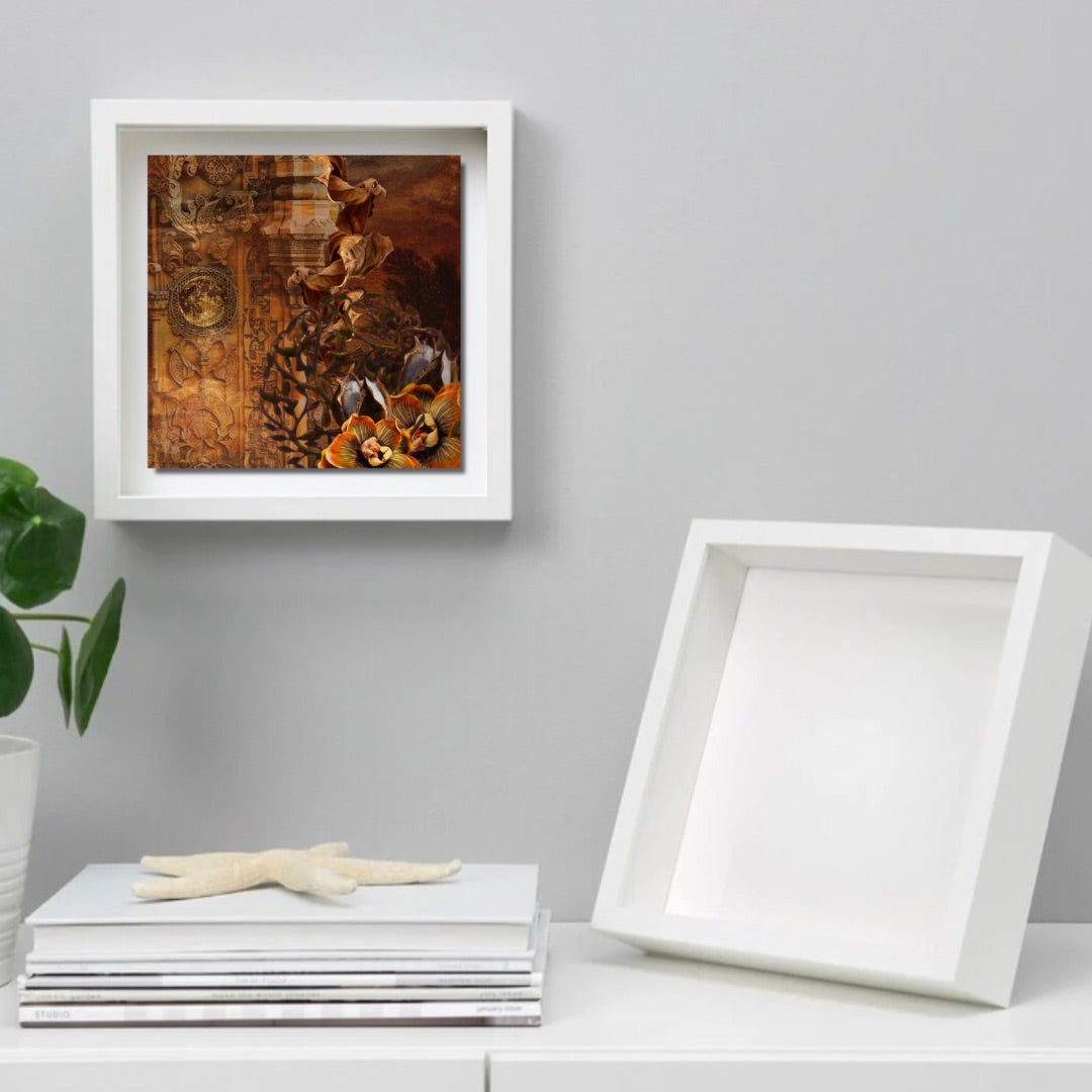 SSD Original Cover Art Printed on 8”x 8” x 1/16” Lightweight Tempered Glass Tile, Classic White Shadowbox Frame, White Acid-Free Mat Backing.