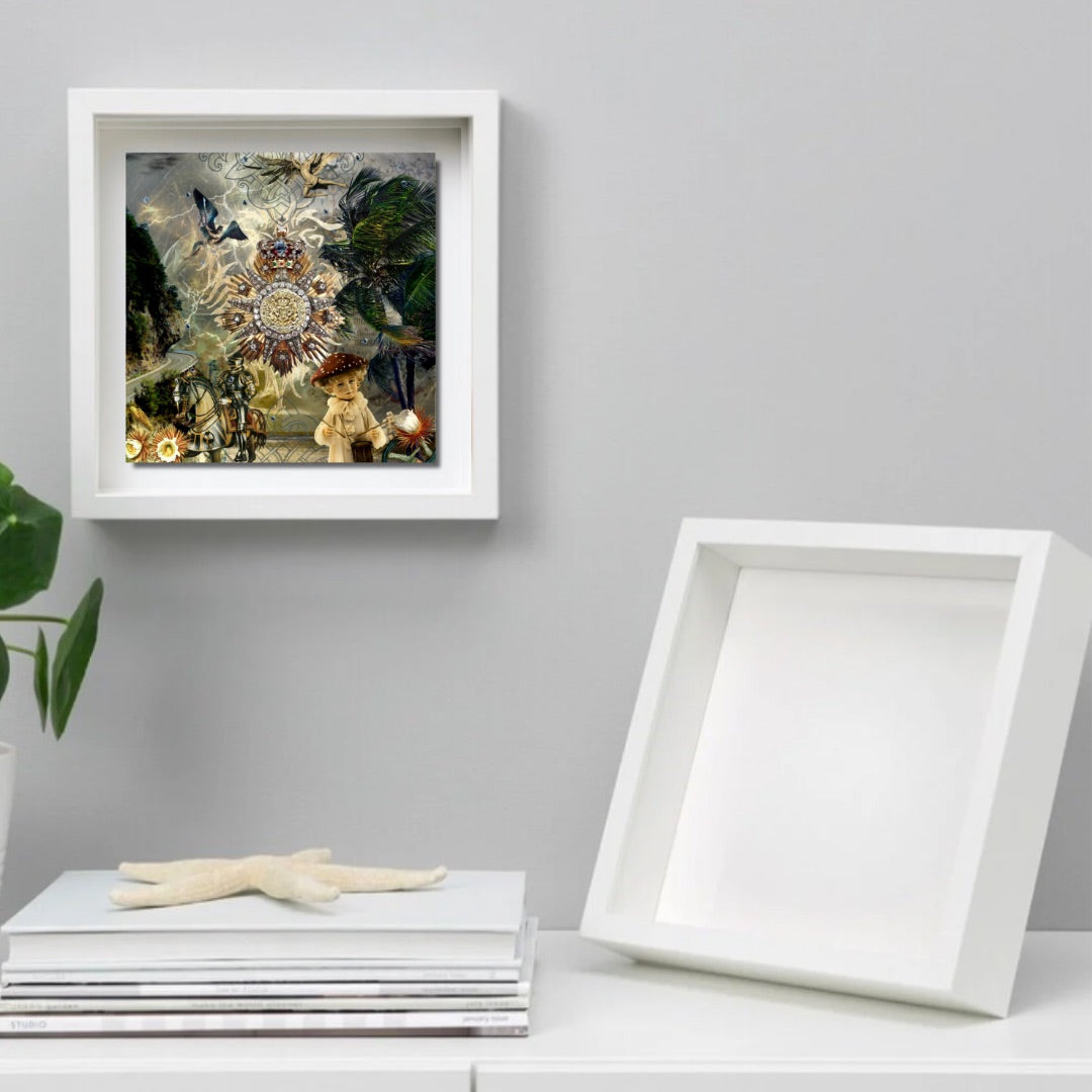 SSD Original Cover Art Printed on 8”x 8” x 1/16” Lightweight Tempered Glass Tile, Classic White Shadowbox Frame, White Acid-Free Mat Backing.