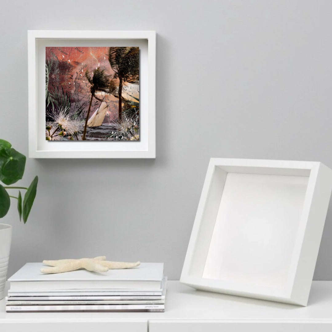SSD Original Cover Art Printed on 8”x 8” x 1/16” Lightweight Tempered Glass Tile, Classic White Shadowbox Frame, White Acid-Free Mat Backing.