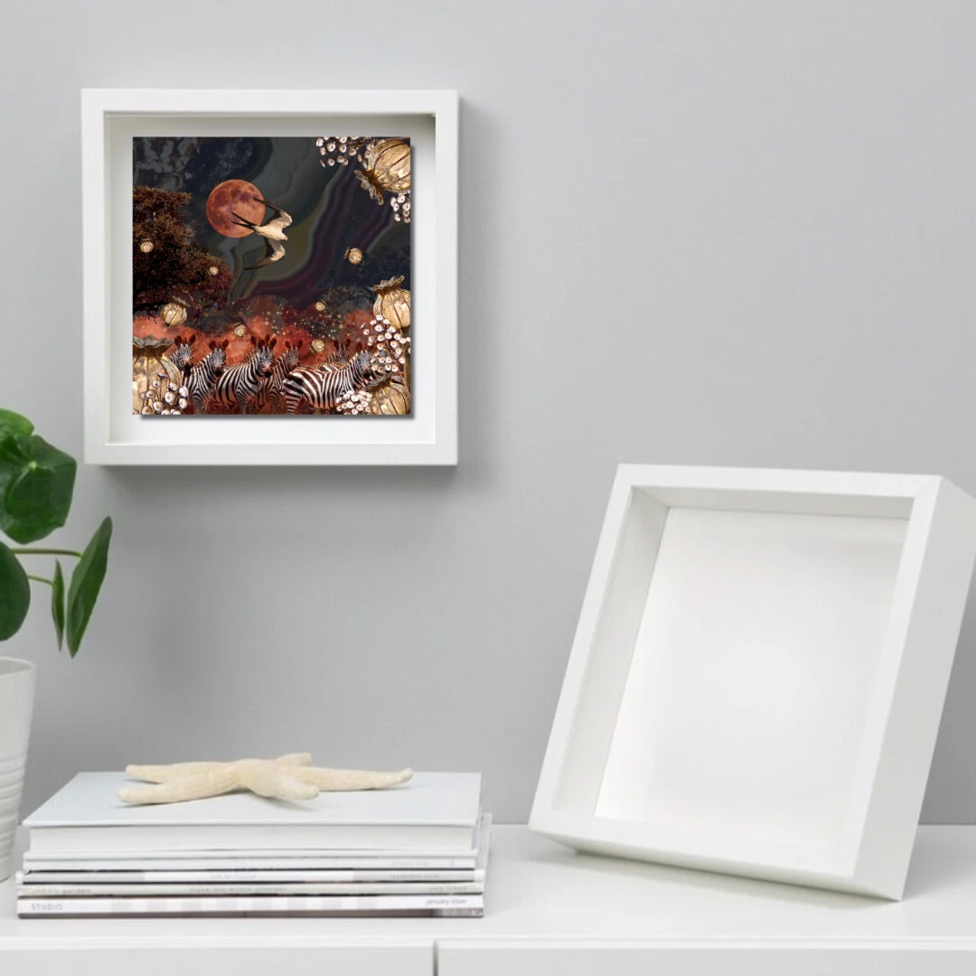 SSD Original Cover Art Printed on 8”x 8” x 1/16” Lightweight Tempered Glass Tile, Classic White Shadowbox Frame, White Acid-Free Mat Backing