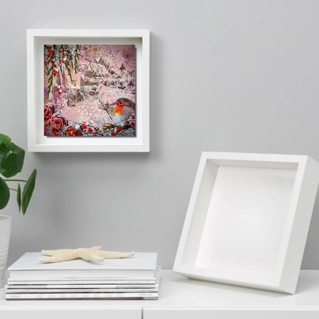 SSD Original Cover Art Printed on 8”x 8” x 1/16” Lightweight Tempered Glass Tile, Classic White Shadowbox Frame, White Acid-Free Mat Backing.