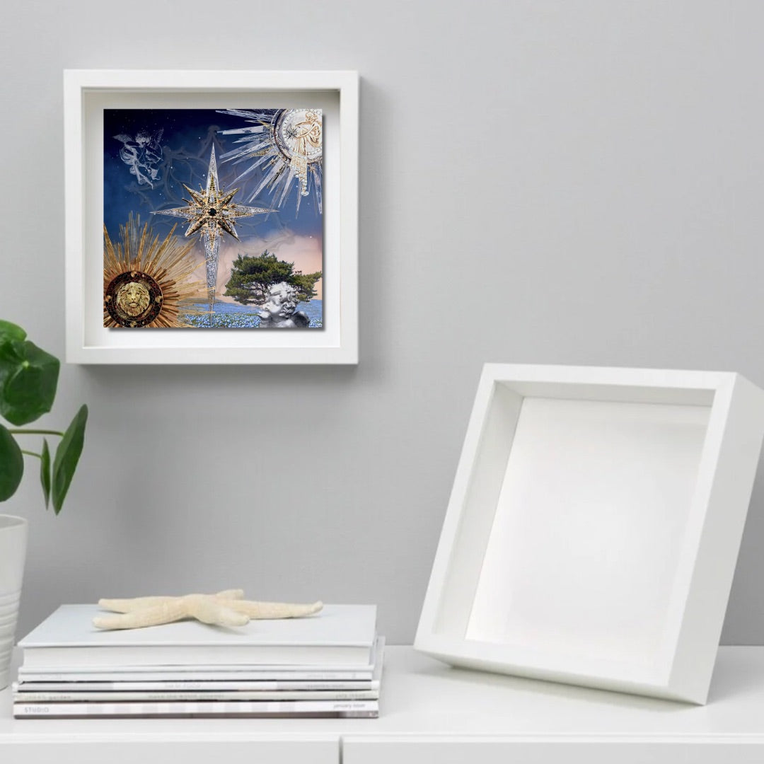SSD Original Cover Art Printed on 8”x 8” x 1/16” Lightweight Tempered Glass Tile, Classic White Shadowbox Frame, White Acid-Free Mat Backing