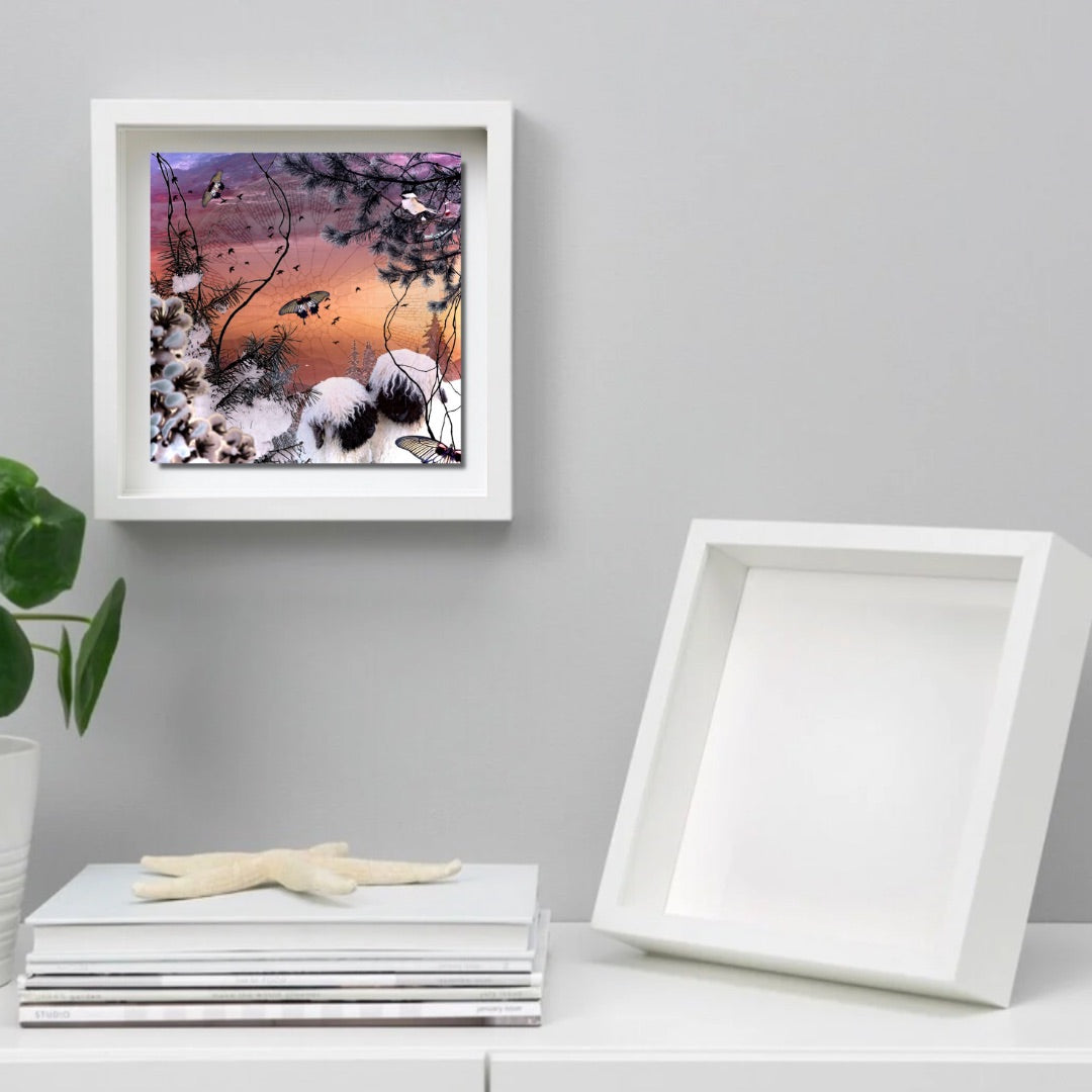 SSD Original Cover Art Printed on 8”x 8” x 1/16” Lightweight Tempered Glass Tile, Classic White Shadowbox Frame, White Acid-Free Mat Backing
