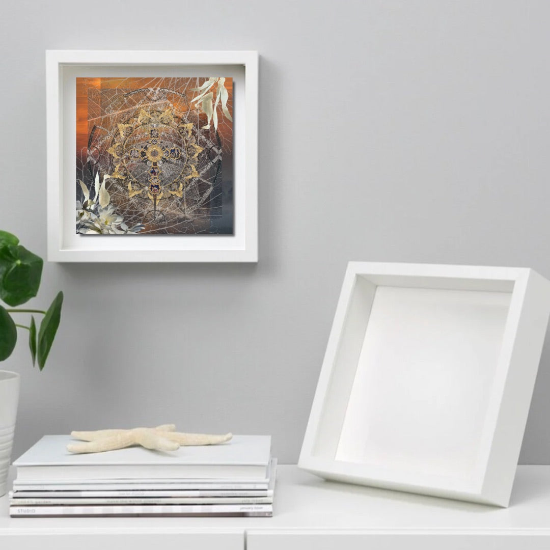 SSD Original Cover Art Printed on 8”x 8” x 1/16” Lightweight Tempered Glass Tile, Classic White Shadowbox Frame, White Acid-Free Mat Backing.