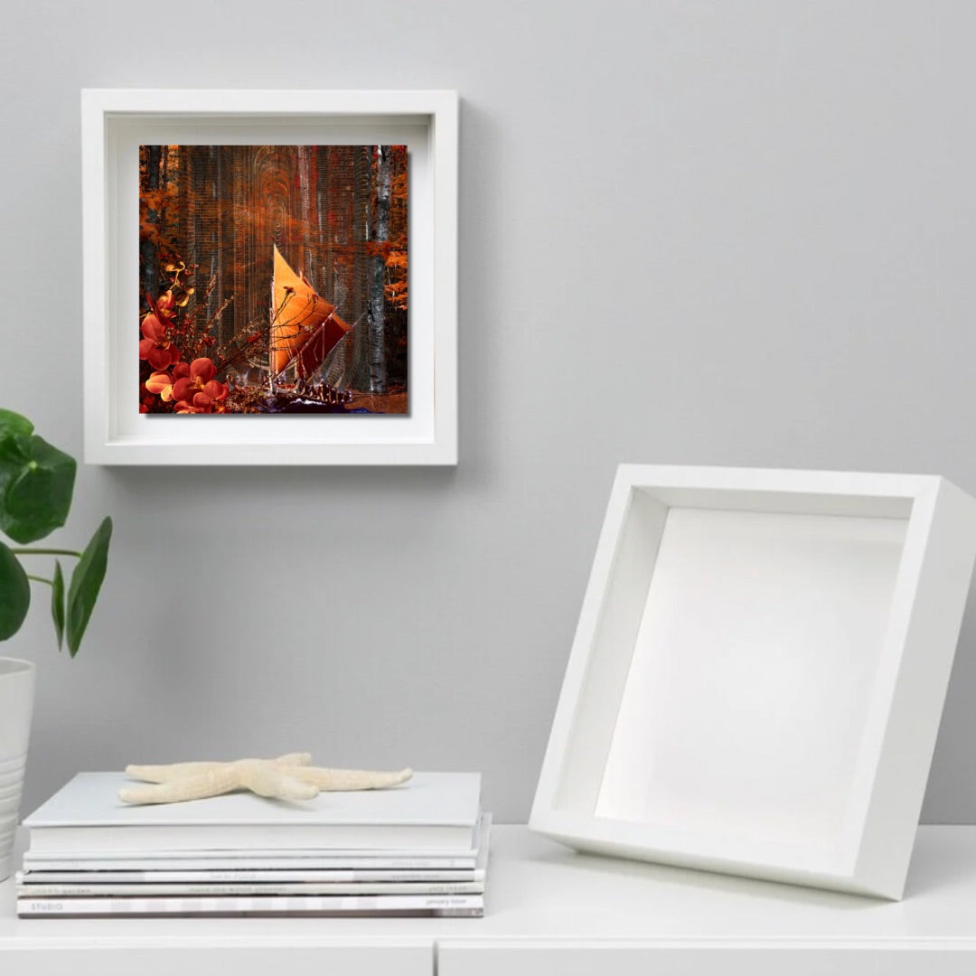 SSD Original Cover Art Printed on 8”x 8” x 1/16” Lightweight Tempered Glass Tile, Classic White Shadowbox Frame, White Acid-Free Mat Backing.
