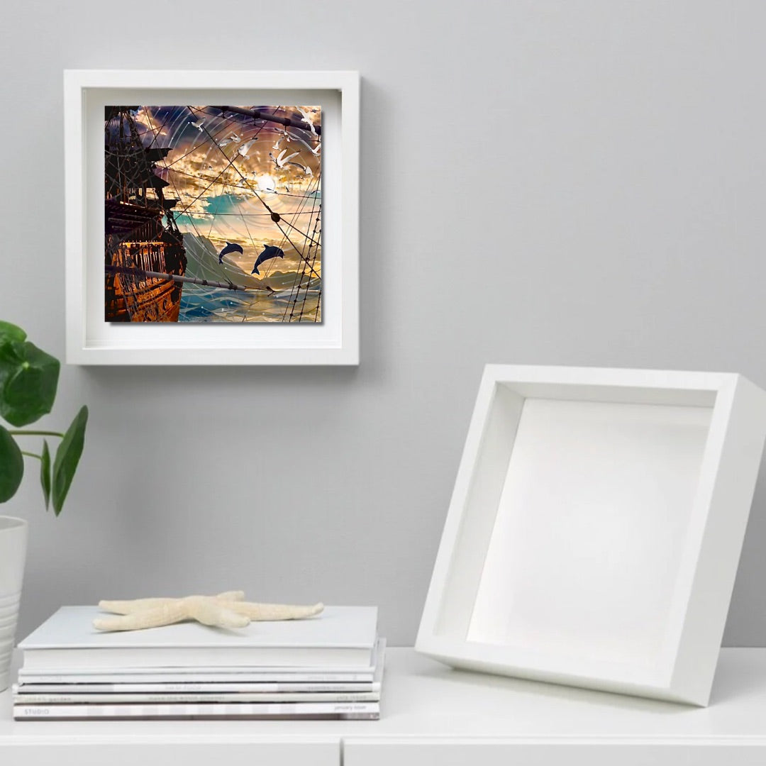 SSD Original Cover Art Printed on 8”x 8” x 1/16” Lightweight Tempered Glass Tile, Classic White Shadowbox Frame, White Acid-Free Mat Backing.