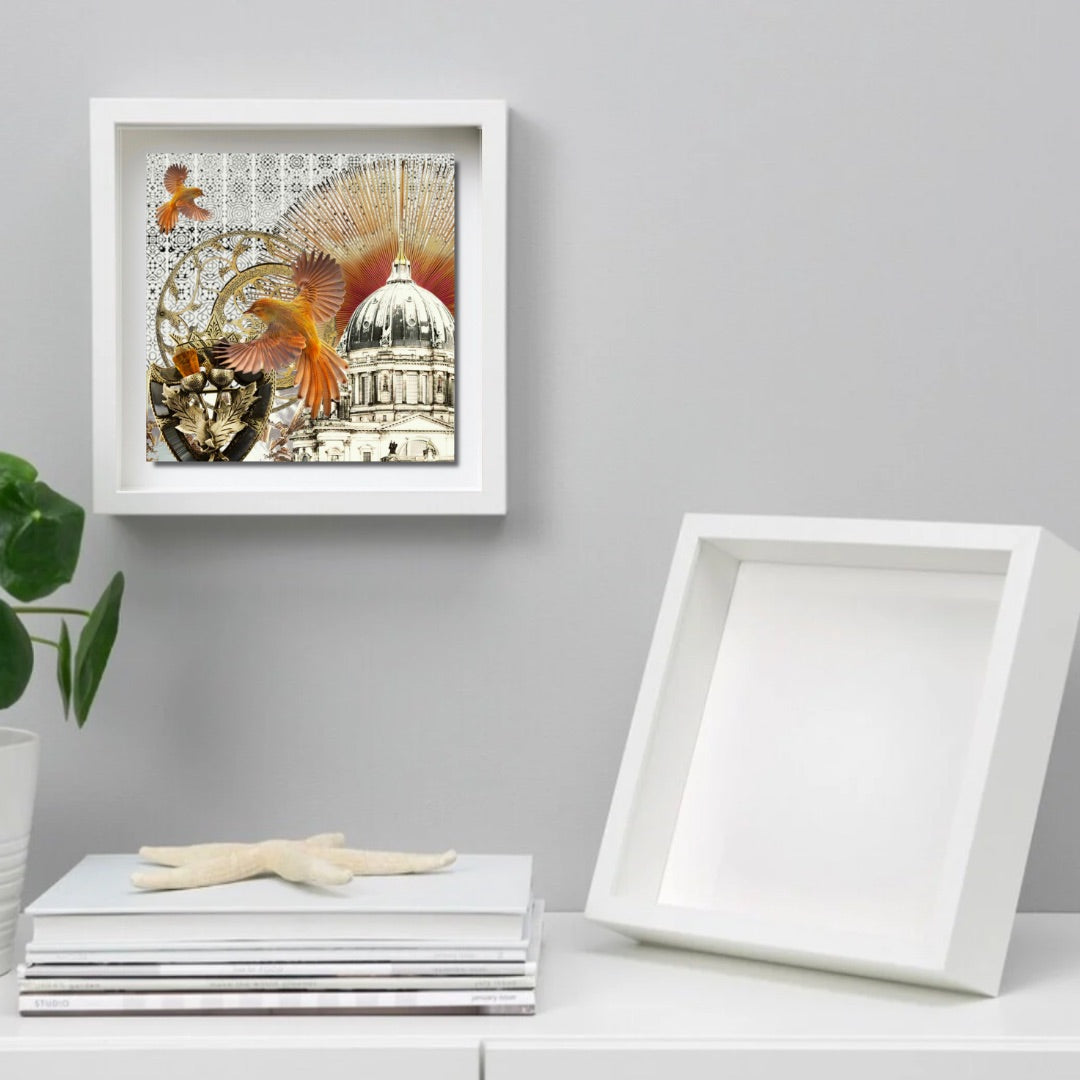 SSD Original Cover Art Printed on 8”x 8” x 1/16” Lightweight Tempered Glass Tile, Classic White Shadowbox Frame, White Acid-Free Mat Backing.