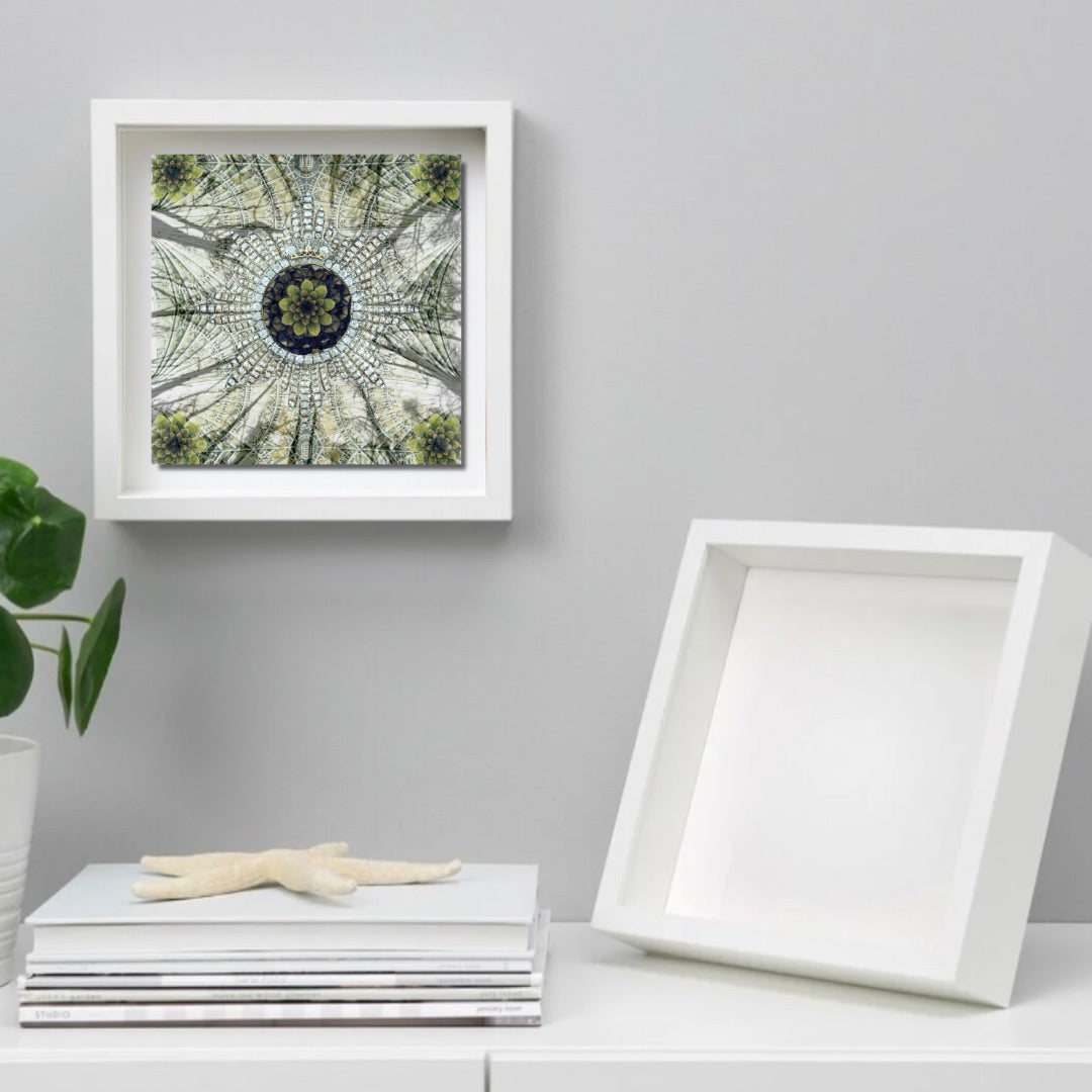 SSD Original Cover Art Printed on 8”x 8” x 1/16” Lightweight Tempered Glass Tile, Classic White Shadowbox Frame, White Acid-Free Mat Backing.